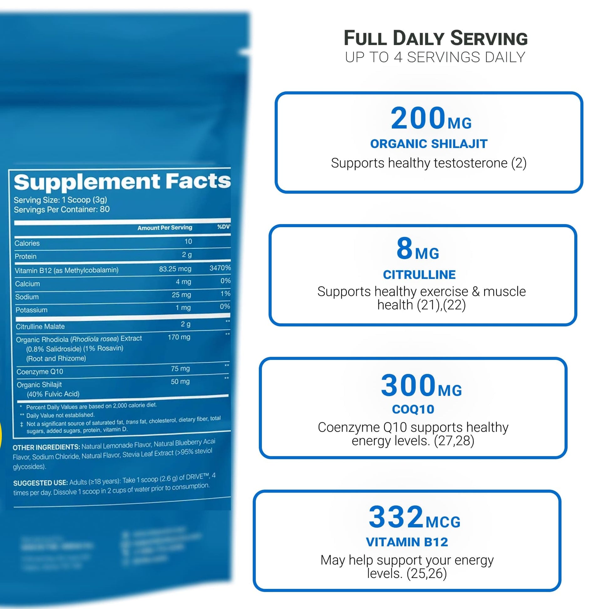 As it does increase energy, it’s not advised that you take DRIVE in the evening, before your bed time.