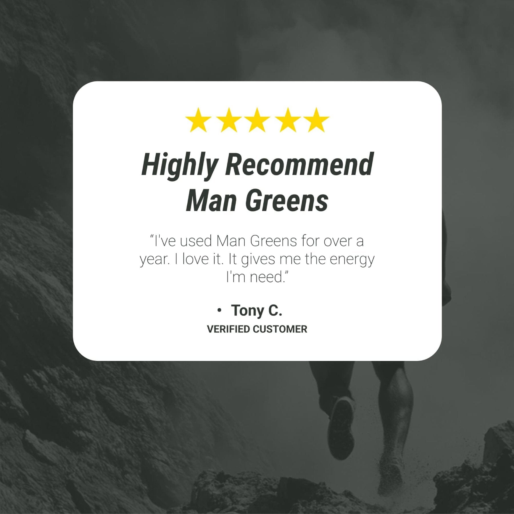 Man Greens contains clinically studied doses of science-backed ingredients that may support male vitality [1], healthy stress response [2], immune function [3], and natural energy levels [4].*