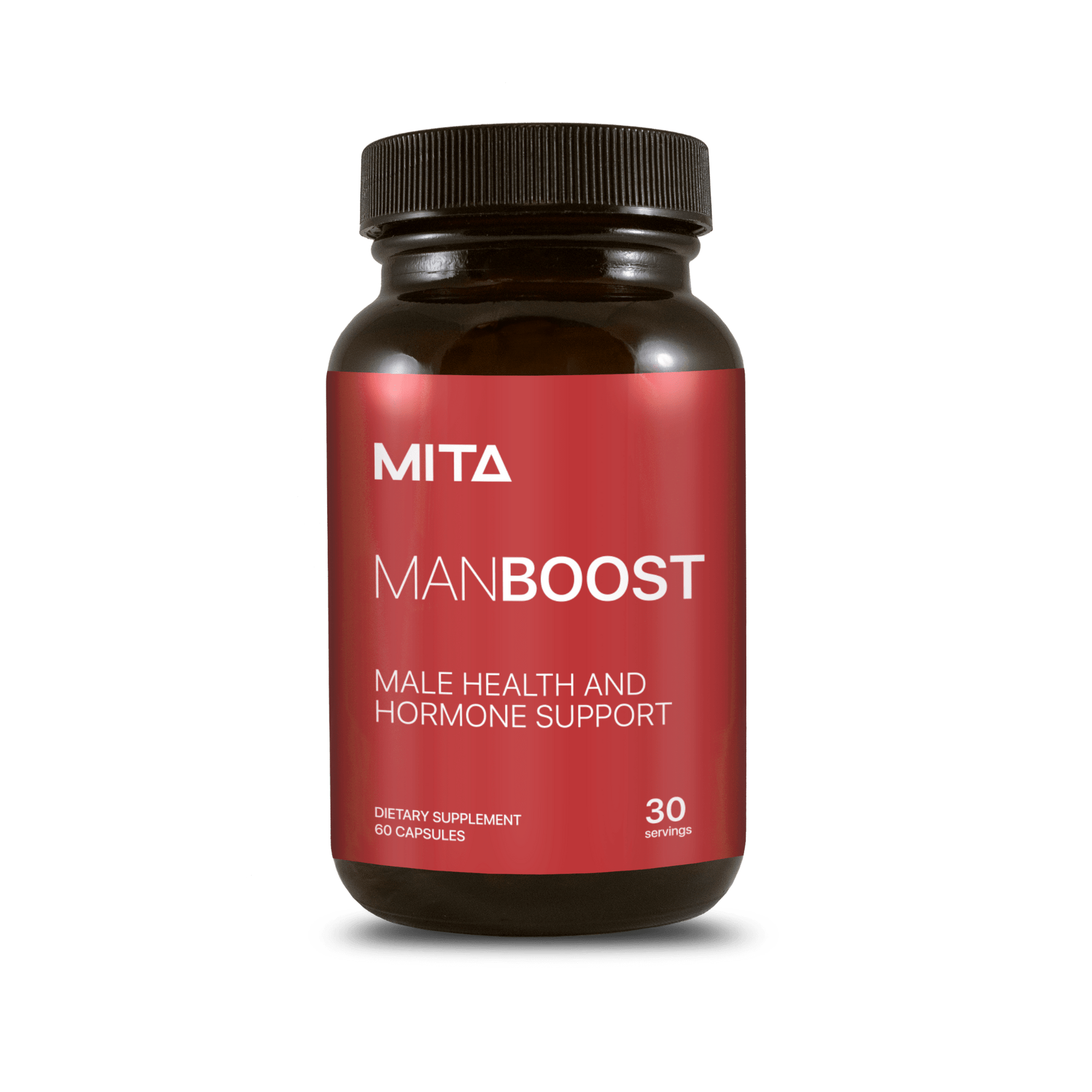 Man BOOST contains nutrients that may support healthy hormone balance in men.* Includes research-backed ingredients that have been studied for their potential effects on hormonal health.* [4][5][6][7]